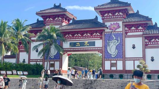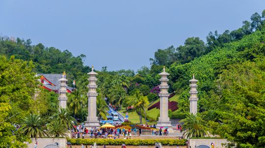 人们常说"福如东海,寿比南山",指的就是南山文化旅游区。整个景区有着碧海沙滩的山海景观和浓厚的佛家气息。